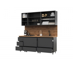 • Оптимальная компоновка: прямой гарнитур позволяет гармонично разместить кухонное оборудование и зону для приготовления пищи.