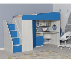 [name] => Кровать-чердак Кадет-1 Белое дерево/Лазурь
